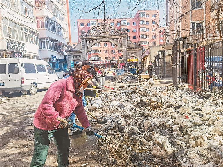 14日上午,记者来到道外区太古新天地小区,在二街区207栋看到,保洁工正在清理庭院内的一处冰包,拉运碎冰和垃圾。据该小区物业负责人介绍,公司高度重视生活报的报道,见报当日,便组织人员开始清理冰包和垃圾。由于小区地势低洼,一部分融雪无法及时排除,南勋物业服务中心在保证小区日常服务的基础上,全员参与春整工作,预计一周内完成小区的整体清理工作。此外,针对部分单元门损坏、声控灯损坏一事,将统一进行维修。