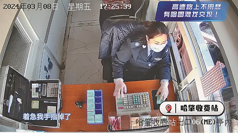 记者从省交投高速运营公司了解到,8日17时30分许,一辆绥化牌照的小型轿车行驶至哈肇收费站出口车道排队缴费时,车内女子询问收费员:“咱这离医大一院多远?从哪儿走近些?”收费员一边熟练操作收取通行费流程,一边回问道:“这个时间走市区堵车,是不是着急呀?”“着急,我手指掉了!”女子急切地说。收费员听到这句话心头一紧,迅速使用对讲机呼叫在岗安全员。收到消息的在岗安全员迅速引导收费区其他车辆为其所乘坐的车辆让行,最大限度地为其争取救治时间,并通知当班班长及值班副站长迅速联系松北交警队三中队执勤人员。