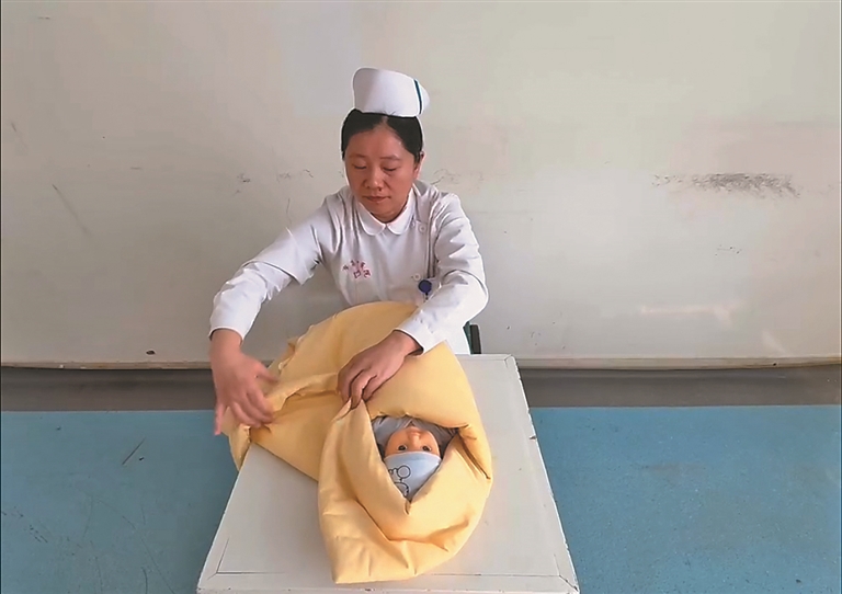 “刚出生的宝宝要用左手托住宝宝的背、颈、头,从床上抱起和放下的时候……”在老年大学母婴护理课堂上,来自哈市第一医院产科的护理专家正在绘声绘色地讲解抱新生儿的正确姿势,在场的几十位老年学员全都专心听讲、做笔记。