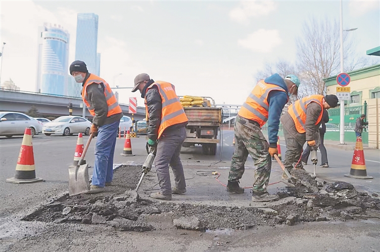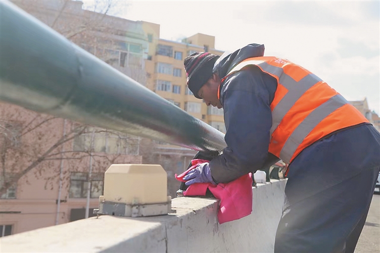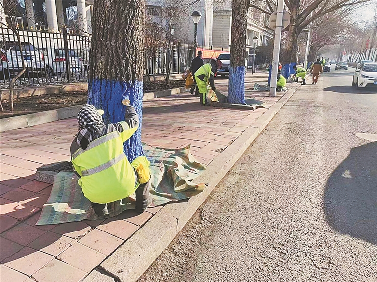 ■简易维修翻浆道路 ■清洗擦拭桥梁设施 ■清理辖区残冰污雪 ■行道树粉刷穿新衣