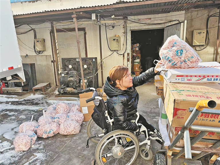 创业之初,王晓旭和丈夫的工作地点在一个破烂不堪的小平房里,屋里的设备只有一个水龙头。冬天是王晓旭最难的时候,“我爱人负责在外送货,我留在库房,但是房子太破了,冬天需要自己烧炉子取暖,我行动不便,炉子是我转着轮椅一块砖一块砖搭的,但即使烧炉子取暖屋里依然很冷,手脚常被冻伤。”那段时间不仅工作环境差,冻品批发也不太顺利。“冷冻品行业属于薄利多销,所以每次都需要大批量进货,我们没有积蓄,只能借钱进货,但因有很多客户赊账,导致我们的资金周转不开。”王晓旭说,虽然自己资金也困难,但她没有急着催账,而是理解客户的难处,自己克服困难。“因为我也从事这一行,深知他们有多么不容易。”靠着服务为本、信誉良好,加上坚持不懈,客户们口口相传,王晓旭不断拓展市场,她的冷冻批发营业额突破了800万。