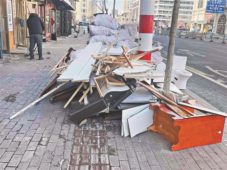 19日10时许,记者来到市民王先生反映的田地街38号门前踏查,这里有一堆建筑垃圾,有拆散的桌椅,也有已经打包成袋的垃圾,“可能是谁家装修放的垃圾,但是占用人行道堆放,给居民出行造成不便。”踏查现场后,哈市城管局工作人员表示,将尽快协调有关部门找到建筑垃圾的所有者,并督促其进行拉运处理。
