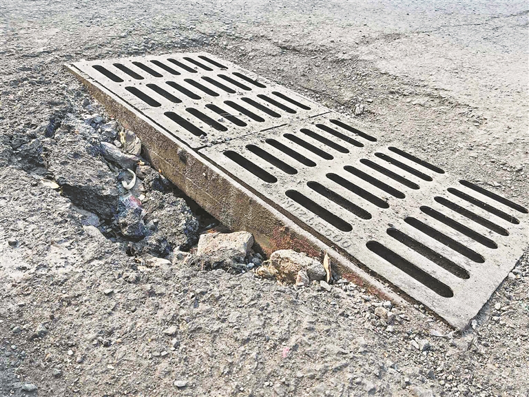 20日10时许,记者到达方女士所反映的兆麟街61号门前,记者看到,下水井的边缘已经碎裂,周围柏油马路下沉,“越坏越大,前几天下雪,有个人从这走崴了脚。”方女士说道。