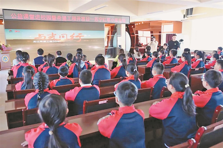 生活报讯 (记者李丹 文/摄) 13日上午,“公益课堂进校园暨希望工程开放日”活动在中国工农红军苏宁小学举行。