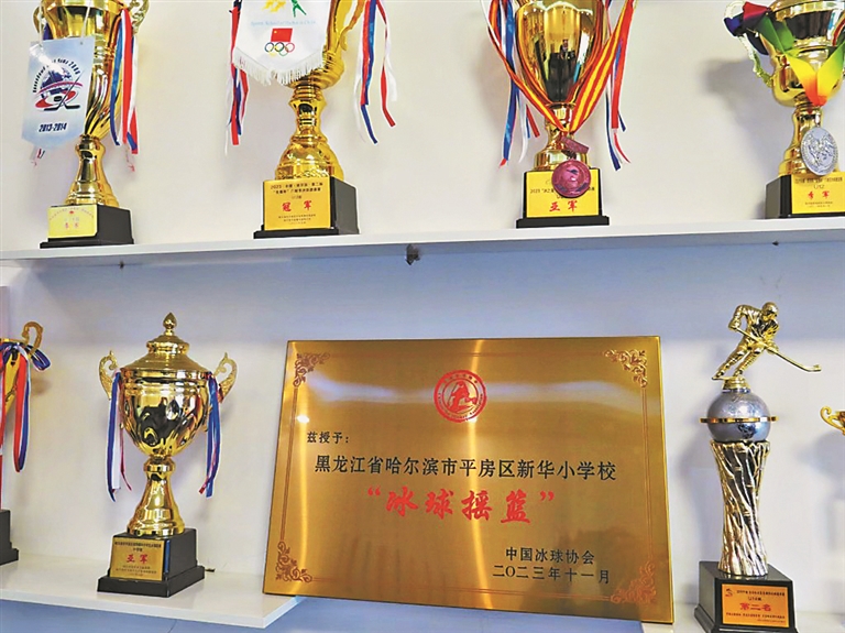 说起王教练,刘万富校长满心佩服,“他是中国女冰的功臣,为冰球付出了太多太多!”这对“老战友”惺惺相惜二十余年,如今都过了退休年龄,却谁也舍不得离开训练场。“作为‘冰球摇篮’,新华小学培养出国家级运动员107名、国家级运动健将77名。”刘万富说,“无论是黑龙江省体工队女子冰球队还是哈尔滨市体育运动学校冰球队,新华小学输送的学员都占据了‘半壁江山’。”