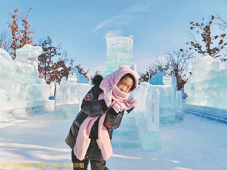 冰与雪是哈尔滨冬季的标志,也是我的最爱。我爱在冰上打出溜滑,爱踩在雪地上那沙沙作响的声音,也爱感受那雪花纷飞的浪漫。