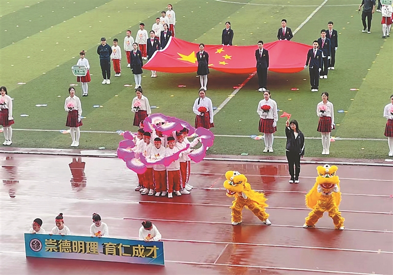 九月“开笔启蒙 播种幸福”:新生入学典礼,以开笔启蒙、军训为主题,让学生在入学仪式中体会播种幸福的希望。