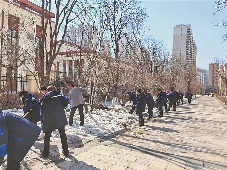 生活报讯 (王霞 记者仲亮) 冰雪消融,春天的气息越来越浓。日前,哈尔滨市巴黎第五区、外滩首府等多个小区的物业公司开展清理行动,重点对园区残雪残冰、冰溜子、越冬垃圾和卫生死角等进行集中治理,为业主营造整洁清爽的环境。