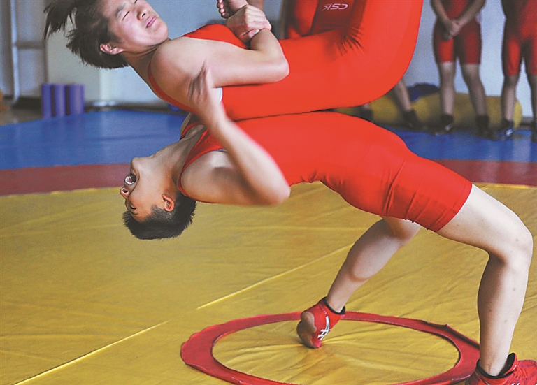后倒背、冲抱双腿、夹颈背……女孩们每天要进行五六个小时的高强度训练,最多一天内被摔八九百次。有人甚至梦里都在给自己“加课”,抱着棉被从上铺摔下来,马海艳不得不把寝室床铺的栏杆加高;无论寒暑,女孩们必须按时出早操;以前馆里没空调时,汗水常常会打湿摔跤垫,她不得不让队员们从湿滑的垫子上退下来,等干一些再接着练……
