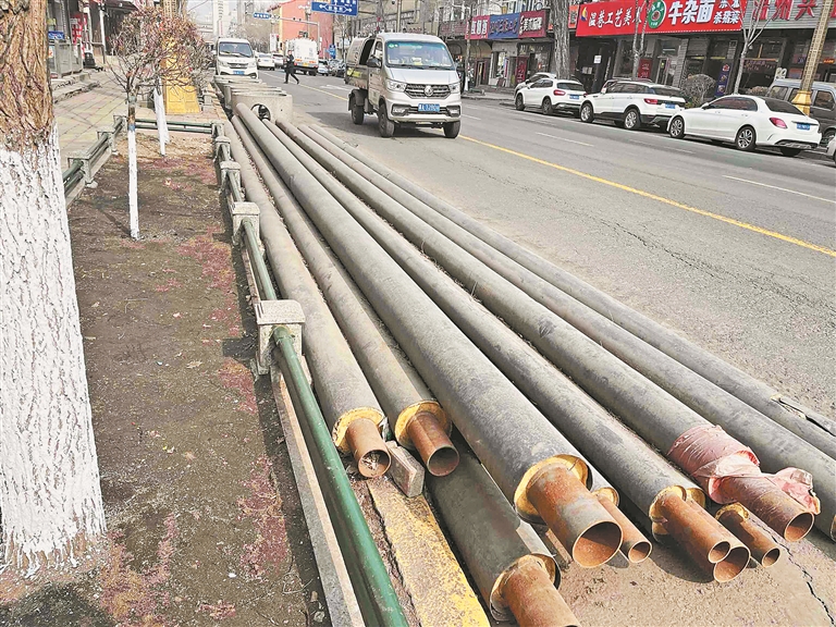 当日10时许,记者来到刘女士报料的地方,在几家商家门前,行车道上堆积了大量的工程材料,有大型水泥管子、金属管材等,一些管材中间的缝隙有许多泥污和还未融化的积雪。“这些材料都放一个来月了,十分影响出行,尤其是开车往外走的时候,特别容易刮车胎,希望有关部门尽快清理。”附近市民说。