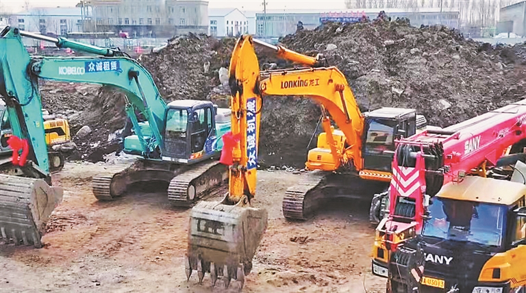 阿城区“华永鑫储能”项目施工现场,挖掘机、铲车轰鸣,运输车辆进进出出,一派热火朝天的忙碌景象。