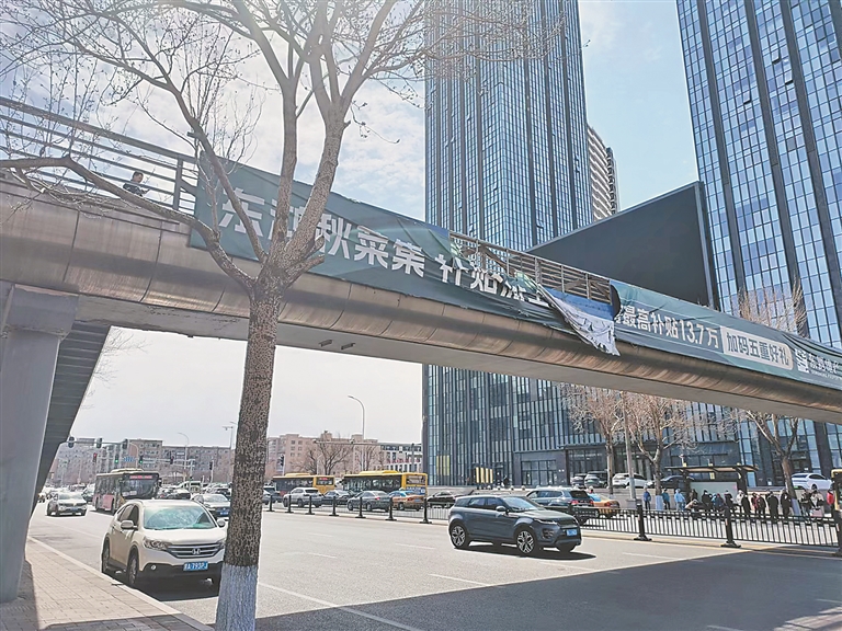 7日10时许,记者来到现场看到,天桥上破损的广告牌幕布随风飘荡,广告牌的一角已脱离护栏,不时与桥体碰撞发出声响。“春天风比较大,从这儿下面走,咣当咣当的多吓人啊!”市民张先生表示。目前,哈市城管局已启动该点位的处置程序,后续处理情况记者将跟进报道。