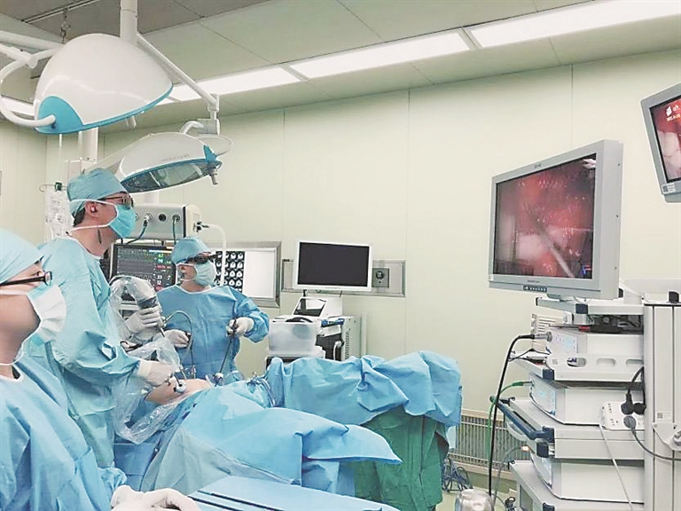 一个月前,刘奶奶出现便血的情况,于是在家人陪同下来到哈医大二院进行检查,肠镜检查发现其患直肠恶性肿瘤。由于刘奶奶高龄并且既往做过结肠癌手术、胃癌手术,腹腔粘连较重,手术难度较大。王贵玉教授带领团队,顺利完成了腹腔镜下的直肠癌手术,成功切除直肠恶性肿瘤。