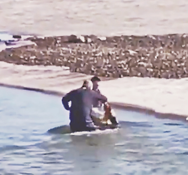 而另一孩子头朝下已没入水中,并随着河水向下游快速流去。此时,水性不好的陈来源立即向下游跑去,跑了一百多米,立即跳入冰寒刺骨的河中,“由于河水湍急,我用尽全力才勉强将孩子抓住。这孩子已经十一二岁,有90多斤,而且全身湿透,身上穿的棉服已经湿透,相当地沉,差点都把我坠倒,当时孩子已经冻僵说不出话来……”