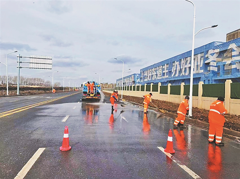 平房清理残冰污雪 外挂线