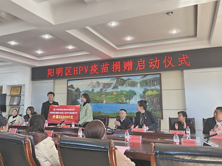 生活报讯 (记者李丹) 记者11日从省慈善总会获悉,为贯彻落实国家卫健委、教育部、全国妇联等十部门联合发布《加速消除宫颈癌行动计划(2023-2030年)》相关文件要求,为更多经济条件有限的女性提供防护屏障,守护她们的生命健康。近日,在牡丹江市阳明区举行“牡丹江市阳明区HPV疫苗捐赠启动仪式”。爱心企业向阳明区慈善会捐赠双价人乳头瘤病毒疫苗(大肠杆菌)1000支。
