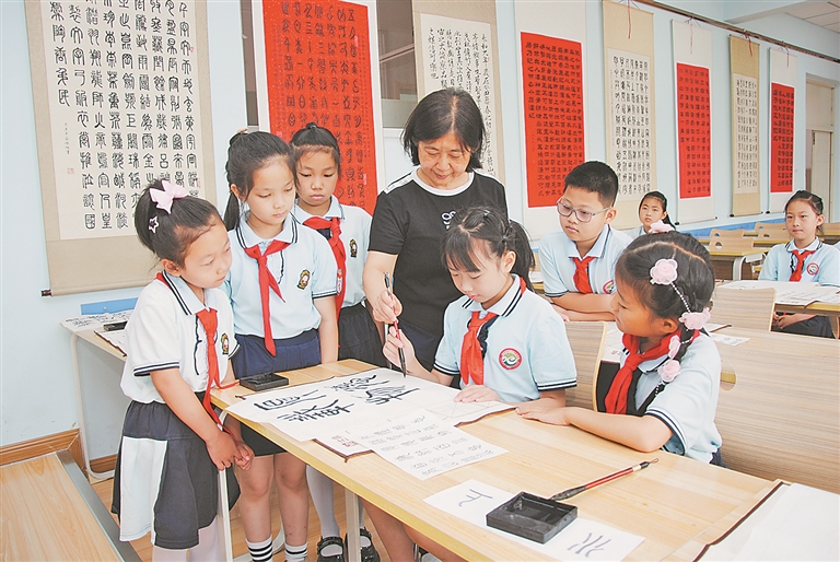4. 以美为要,陶冶情操:在合唱、古筝、舞蹈、非洲鼔、架子鼓、软笔书法、油画、国画、儿童画等课程中挖掘了学生的艺术潜能,陶冶艺术情操,提高学生艺术鉴赏力。