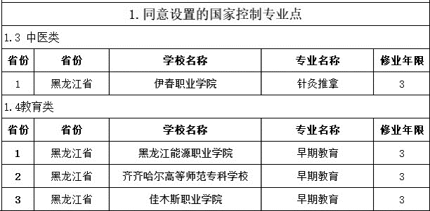 生活报讯 (记者吕晓艳) 记者从黑龙江省教育厅获悉,近日,教育部公布2024年高等职业教育专科专业设置备案和审批结果。其中,我省新增设4个高职专科国家控制专业点。