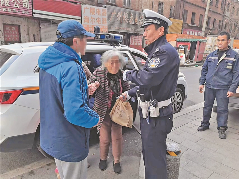 在安顿好老人后,立即电话通知巡逻车民警焦长昆、辅警刘京。两人到达后发现老人交流比较困难,了解到老人今年82岁,家就在周边商场附近。抵达后,老人又称此处并不是她家。随后,两人在老人身上发现了家属联络卡,立即与其家人取得联系,并送回家中。家属表示,老人患有小脑萎缩已经寻找了几个小时,非常感谢交警的爱心行为。