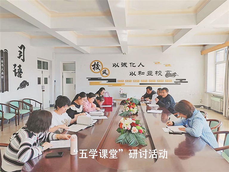 改革的是课堂,成长的是教师,受益的是学生。学校借助教师专业能力提升活动,促进教师“五学课堂”的任务设计、活动设计、评价设计,来引导学生开展有效的自学、互学和展学,深度促进“五学课堂”的研究和实践。借助小组建设,通过学生视频讲题,板演展示,质疑补充等,提高学生展演能力,增加互学深度。由课堂到课外拓展延伸小组文化建设,塑造小组精神文化,提升凝聚力,促进素养提升。