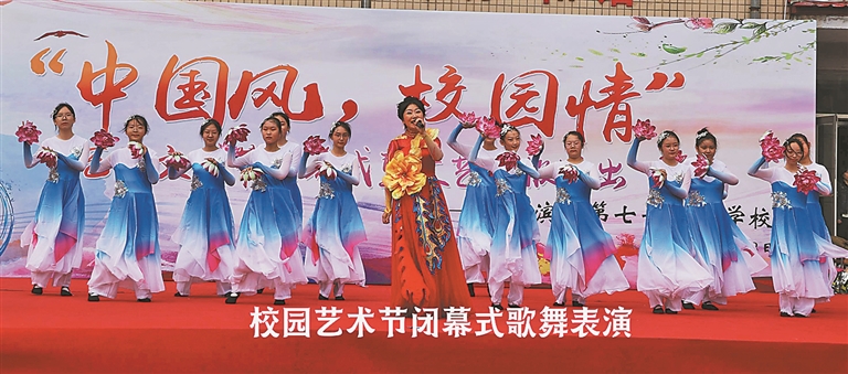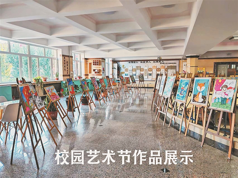“音”你而美,携手“活动”,学校开展一系列的艺术活动。“课前一支歌”、校园艺术节文艺汇演、校园主持人大赛、“一二·九”学生大合唱比赛、艺术活动月等,为学生提供展示激情与才华的平台,让快乐回归校园,让教育不忘初心。学校民乐队在市中小学生艺术类集体乐器比赛中荣获二等奖。校合唱队、冰雕队多次在市级比赛中荣获特等奖、一等奖。
