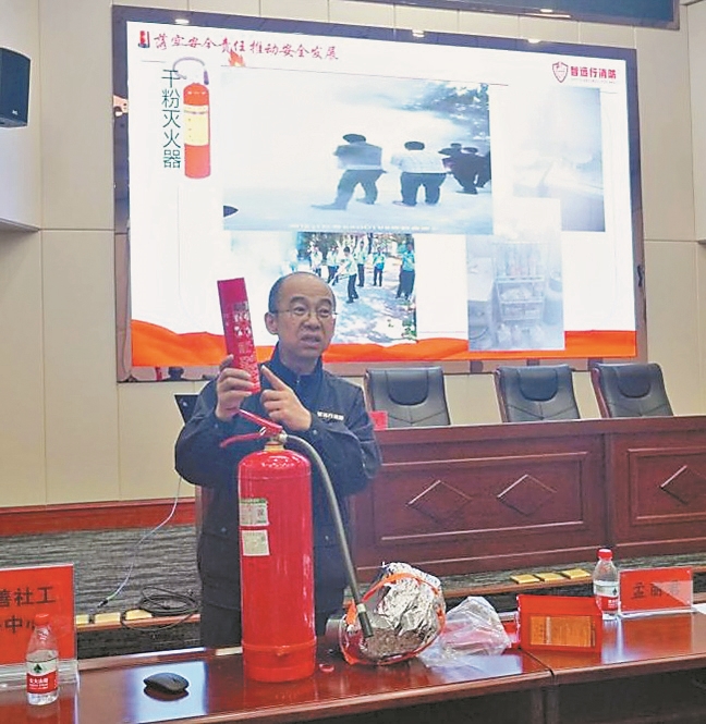 本次培训,围绕基本常识科普、火灾案例警示、消防隐患排查、安全意识培养等方面重点讲解,就如何有效预防火灾、初期火灾的扑救及正确的逃生技巧等消防常识,给大家上了一堂精彩的“安全课”。通过言传身教的方式对消防安全知识进行了生动讲解,现场演示了消防器材正确使用方式,组织进行了消防应急逃生演练,通过“理论+实践”,帮助全体职工在应急处置、灭火逃生、抢险自救、预案演练等方面夯实了安全常识,提升了大家防范火灾意识及自救能力,筑牢了安全防线。