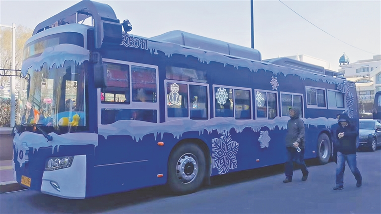 生活报讯 (记者栾德谦 文/摄) 19日上午,在哈尔滨开江季活动现场外围,冰雪风、剧场风、电车风的主题巴士让人眼前一亮,很多前来江边游玩的市民纷纷登上主题巴士参观打卡拍照。