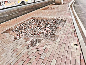 了解情况后,哈市道桥部门相关人员迅速赶往现场踏查。经查,该处碎石破损系地铁施工完毕拆除临时变电箱设施所致,已计划在拆除后组织人员对该区域及破损人行道一并修复。目前,破损区域已修复完毕。