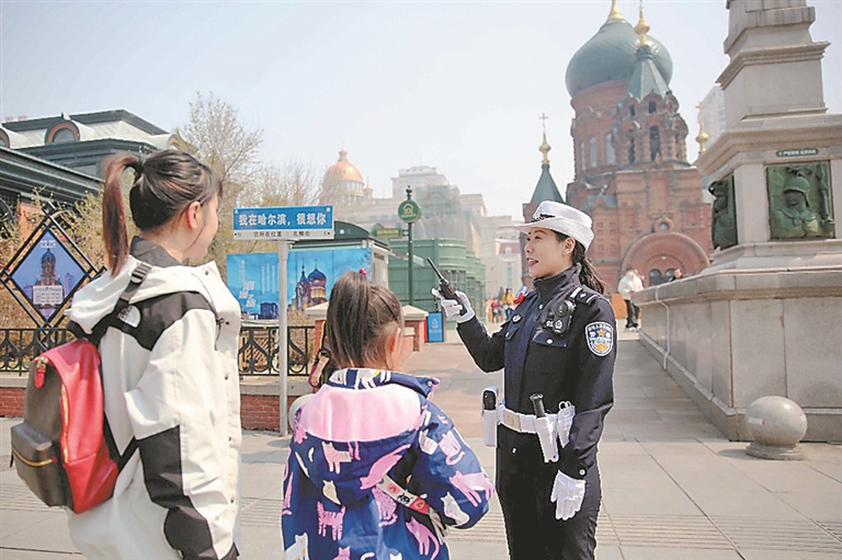 生活报讯 (记者何兴丽) 周末假期,哈尔滨市中央大街、防洪纪念塔、索菲亚教堂、太阳岛风景区等热门景区、商圈游客络绎不绝。为进一步提供良好的旅游出行环境,哈尔滨市公安局交警部门通过细化安保方案、加强疏导管控、劝导违停车辆等举措,营造安全、有序、文明的道路交通环境。