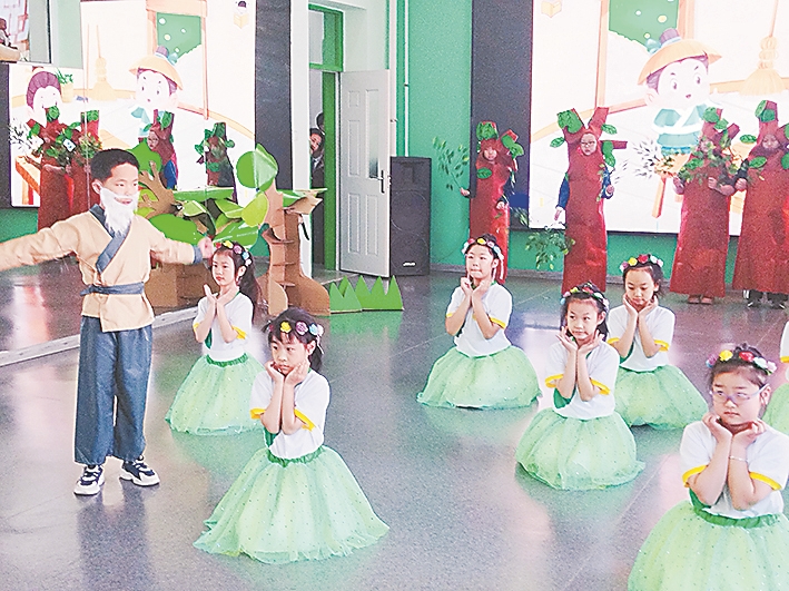 你瞧,一幕幕精彩的课本剧,牵引着学生徜徉在历史长河,漫步在经典之中:孩子们在“拔苗助长”“狐假虎威”等传统文化的故事中启智明理,在“岳阳楼记”“完璧归赵”感悟中华历史的潺潺传承,在“珍贵的教科书”“小英雄雨来”“为中华之崛起而读书”中接受红色革命的精神洗礼……