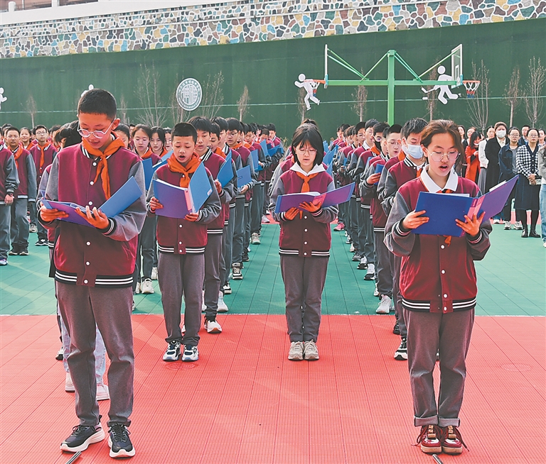 学校致力于丰富文化资源,持续加大校园文化建设。学校将阅读资源推送到离学生最近的地方,设置阅览室、图书馆,在教室显著位置悬挂有关读书的格言和标语。学校将书香校园创建和常规活动有机结合,为学生打造沉浸式阅读环境,吸引学生利用闲暇时间阅读。自建校以来,李立新校长秉持教育的本质是唤醒和共鸣的办学思想,坚持立德树人、五育并举的办学理念,多次倡导师生们广泛涉猎各类书籍,并给师生们提供多方阅读平台。他尊重知识、关怀师生成长,重视学校文化建设。在李立新校长领导下的“书香校园”建设工作小组,有健全的工作机制,有专门部门主抓“书香校园 ”建设,学校用好宣传栏、文化墙、校园广播等,为学生营造浓厚的读书氛围。
