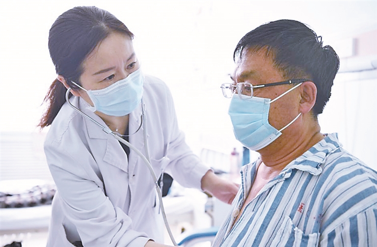 心内科副主任张烁教授为“换心人”于文峰检查身体情况