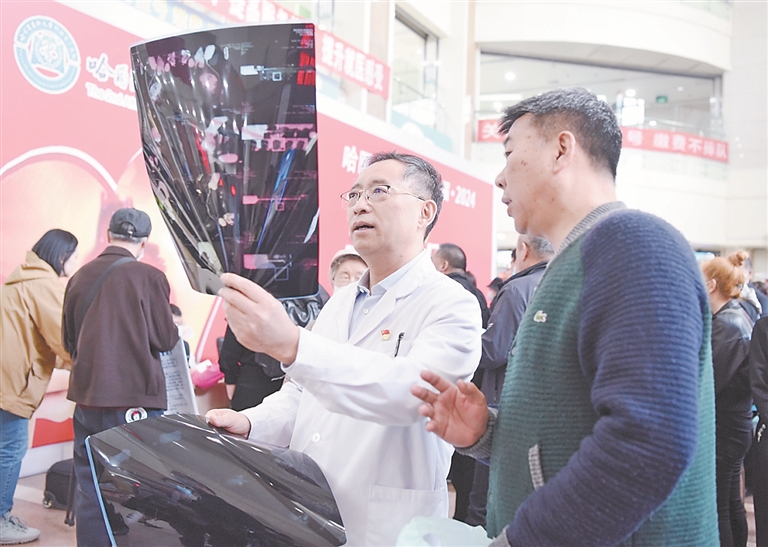 4月26日,第二十届“4·26爱心日”大型义诊活动在哈医大二院门诊楼一楼大厅举行,市民们带着各项检查报告在义诊桌前排起了长长的队伍。其中不乏人们熟知的“换心人”的身影,亚洲心脏移植存活纪录保持者于文峰术后第30年、赵传军术后第29年和孙立滨术后第17年都来到了义诊现场,一起来庆祝这个属于“爱心”人士的节日。哈医大二院副院长王广志出席,哈医大二院心血管病医院院长、心内科主任于波教授和心外科主任田海教授带领专家团队为市民朋友们提供免费的健康科普和义诊服务,耐心细致地为群众答疑解惑,提出专业的诊疗意见,提高人民群众对心脏健康的认识。