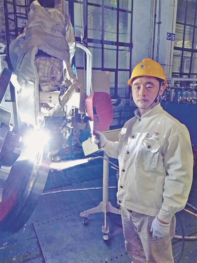 2015年,孙柏慧带领班组成员出色地完成了国内首台重点工程机组“新型厚壁钛合金自动化焊接应用”,但是在此之前,用钛合金焊接对他所在的公司来说是一个全新的课题,“钛合金这个材料非常好用,但是它有一个大的问题,就是在高温的时候会与空气中的氧气进行氧化,只要达到600多度就开始氧化,从而导致一些裂纹、气孔,影响钛合金的使用性能。”孙柏慧告诉记者,在焊接过程中,如何不让钛合金氧化就成为了重点,“后来经过我们的反复研究和试验,利用惰性气体和被压的方式,减少钛合金的高温氧化。”
