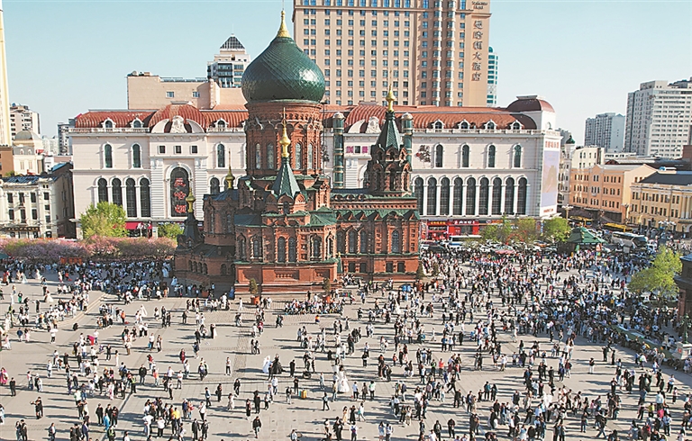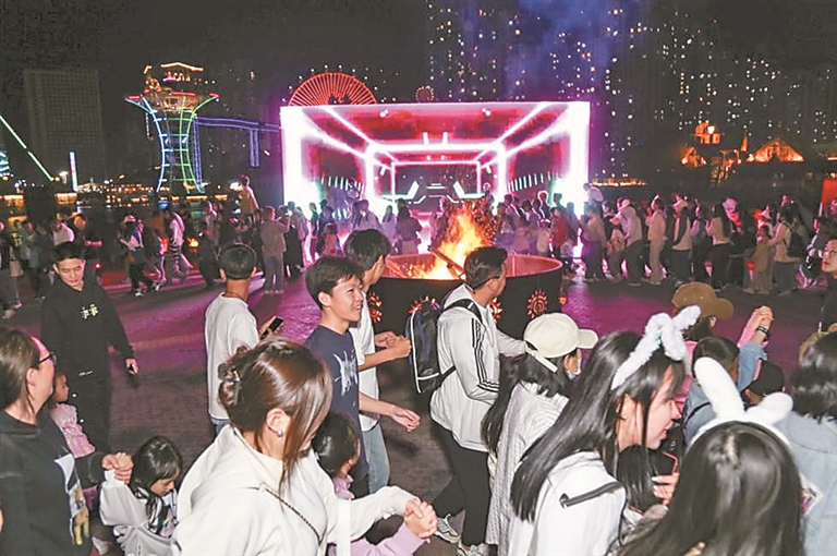 从假期第一天起,哈尔滨中央大街商圈一直人流爆棚,尤其是夜幕降临后,松花江畔上演的大型光影秀和无人机表演,更是吸引了大批市民、游客前往。在索菲亚广场,白天有精彩的露台音乐会;晚上有浪漫的“星光花海”“金马车”“月桂树”等灯饰景观烘托氛围,还有悠扬的月色琴音相伴,尽展“音乐之城”的无穷魅力。中央大街花车巡游,主打一个沉浸式浪漫互动;登上热搜的“蹦迪轮渡”,船上、岸上咔咔互动……难怪有一位四川游客在返程前发文说:“千言万语汇成三个字:来对了!”