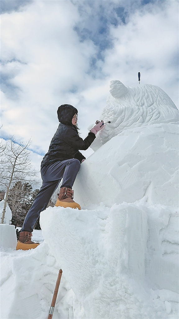 “冰雪雕塑这一行,女性从业者是比较少的。”王海峰坦诚地告诉记者,“主要是因为无论是冰雕雕刻还是雪雕雕刻,对体能是有一定要求的,冰雪赛事一般会进行4天左右,每天工作大约10小时,不仅要克服严寒天气,还需要团队成员之间非常默契,才能在规定的时间内完成效果最佳的作品。”十多年的从业生涯,让王海峰经历了很多难忘的瞬间。
