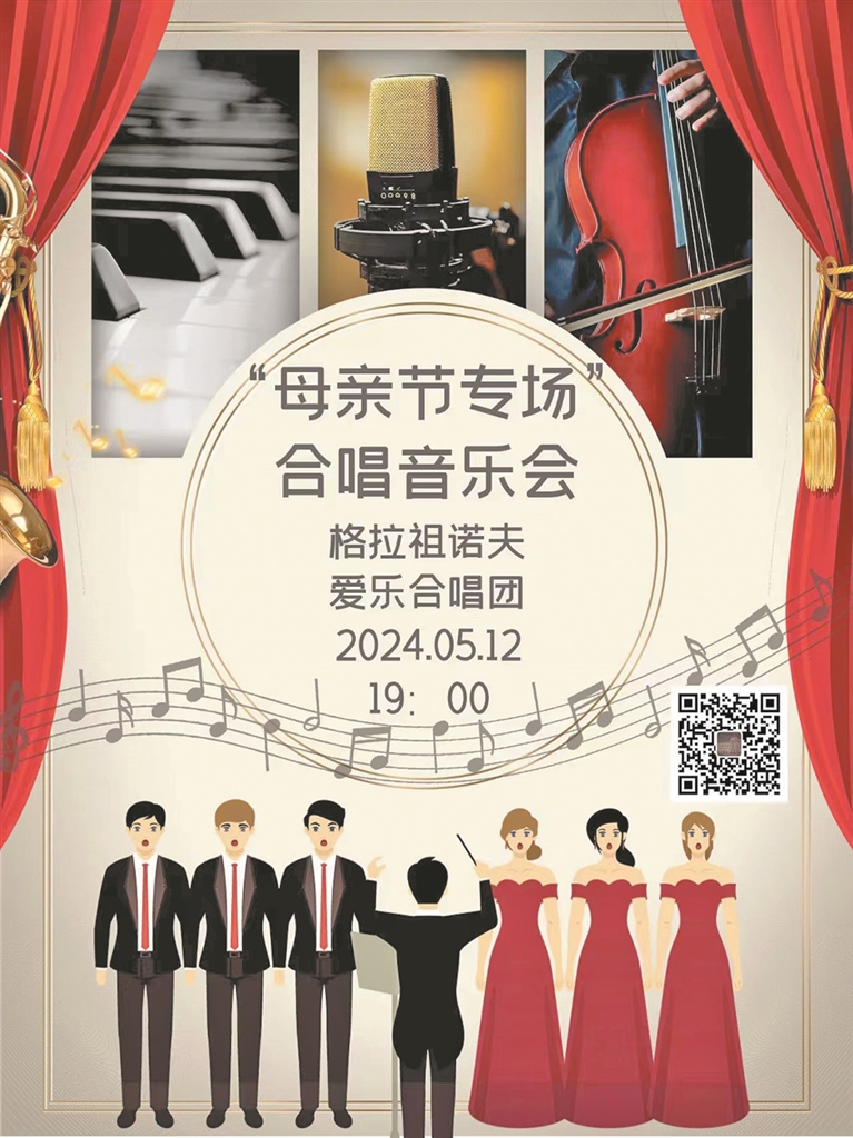 5月12日19时,格拉祖诺夫爱乐合唱团将献上“母亲节专场”合唱音乐会。音乐会上,《带我到山顶》《天之大》《母亲教我的歌》《梦中的额吉》《奉献》《母亲的微笑》《妈妈的娜鲁娃》《想你的365天》等耳熟能详的歌曲将在老会堂音乐厅一一展现。