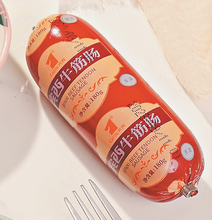 宾西牛筋肠(一根) 本届徒步节新增装备由宾西集团提供,采用经典配方腌制,醇厚肉香与牛筋弹性的美妙融合,每一口都肉香四溢。