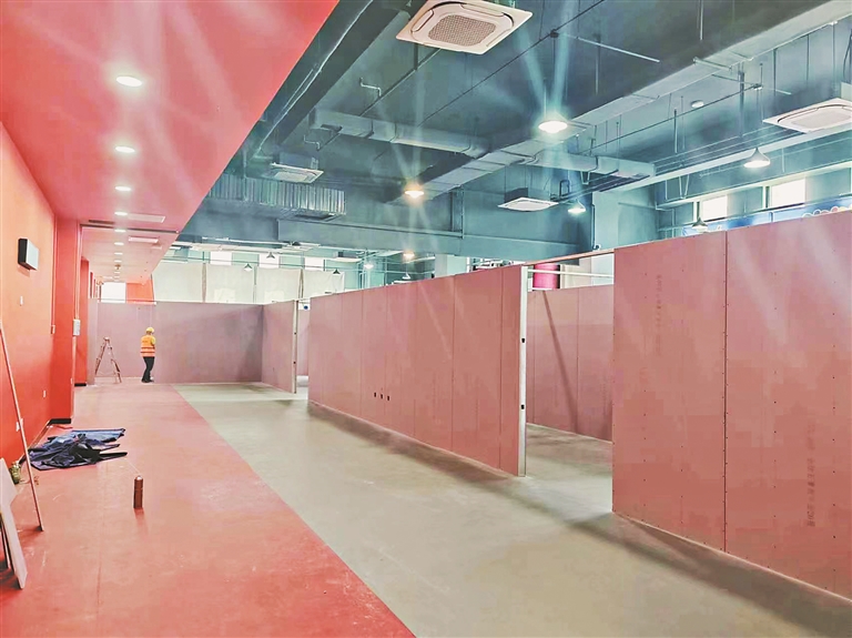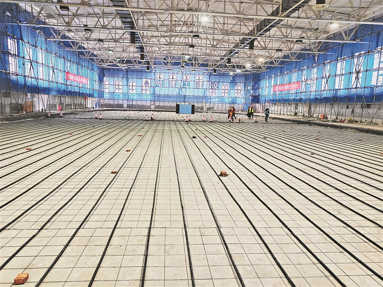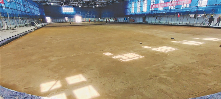 随后,记者又先后来到老训练馆和新训练馆看到,老训练馆已完成新建冰场的基础施工,工人们正在刷白色涂料。新训练馆已完成场馆加固,功能房间粉色石膏板隔断完成。“老训练馆是把原有冰场拆除新建,供运动员训练使用;新训练馆是把老冰场拆除后,在原址新搭建功能房间,这些房间给媒体及志愿者等休息或工作使用。另外,球馆周边八区的市政道路及绿化工作也在这次改造中,目前庭院工程市政应急消防通道处已完成暴马丁香种植施工。”秦绪林表示。