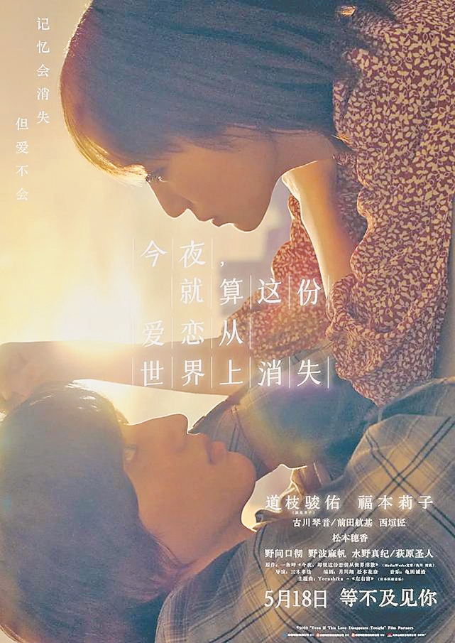 18日上映的两部日本爱情片也很值得关注。《今夜,就算这份爱恋从世界上消失》由三木孝浩执导,道枝骏佑、福本莉子主演。影片中,日野真织(福本莉子饰)找到神谷透(道枝骏佑饰),提出要和他假扮情侣,并与他约定了假扮情侣的三个条件,一段甜蜜又浪漫的约会之旅就此展开。