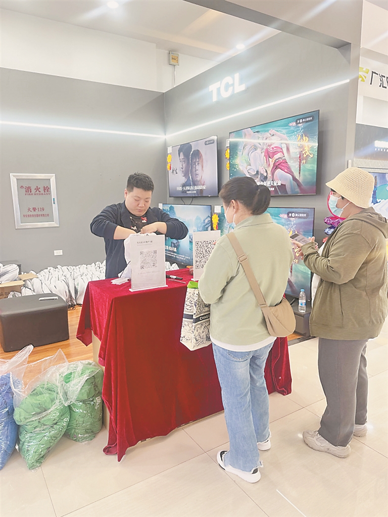18日-19日,记者在各领取点看到,许多参与徒步的市民前来领取装备包,现场秩序井然,广汇电器的工作人员以及志愿者团队在现场为大家派发。本次活动为广大参与者精心准备了包含T恤衫、遮阳帽、双肩抽绳包、饮品、哈肉联红肠、宾西牛筋肠在内的精美装备包。不少参与者迫不及待地在现场打开装备包,想看看本次徒步节T恤的样子,摸一摸面料是否舒适。也有市民高兴地直接穿上T恤,看是否合身。