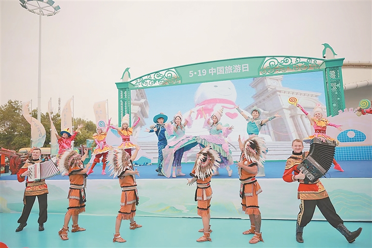 生活报讯 (记者薛宏莉) 5月19日是第14个“中国旅游日”,今年的主题是“畅游中国 幸福生活”。当天上午,以“龙年游龙江 冰城夏都览风光”为主题的“5·19中国旅游日”哈尔滨市主题活动在极地公园广场拉开序幕。律动的歌舞表演、多彩的“尔滨”风情短片、精彩的重点景区文旅推荐官推荐活动,以及宣传展示区内各文旅企业的火热互动,让市民、游客纷纷表示:“更加期待哈尔滨的夏天了!”