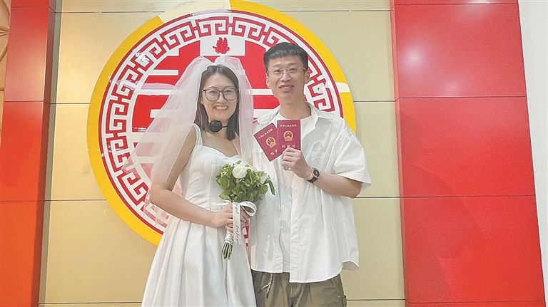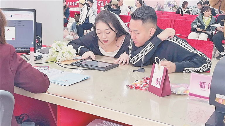 据悉,“5·20”当天,为了满足新人们的需求,哈市婚姻登记机关为爱加班,应对登记热潮。