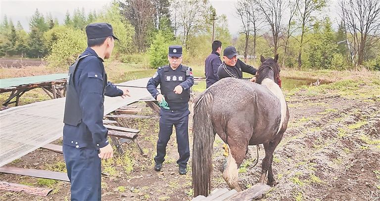 生活报讯 (记者栾德谦) 17日中午12时许,鸡西边境管理支队珍宝岛边境派出所接到辖区群众白女士的求助:家中一价值3万余元的红褐色、高约150公分的马匹走失,寻找一上午无果后,便报警求助,希望派出所能够帮忙寻找。