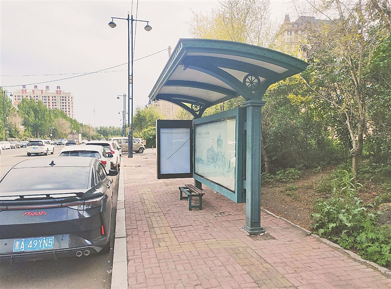 公交站荒废4年 居民马路上等车