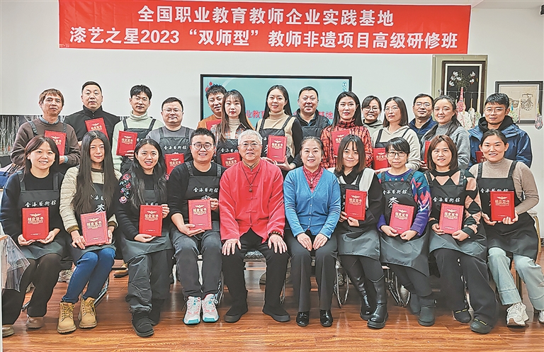 这些年,夏立军在漆艺的传承上一直在努力。“除了积极参加展会,让更多人接触并了解漆艺外,我们还举办免费培训班和研学活动。”此外,夏立军和团队还会不定期开设直播,讲解并现场制作漆艺作品。