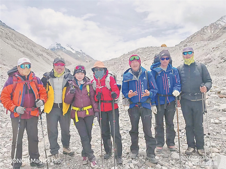 李娜(左三)下撤到大本营后与队友曹峻(李娜右侧)等合影
