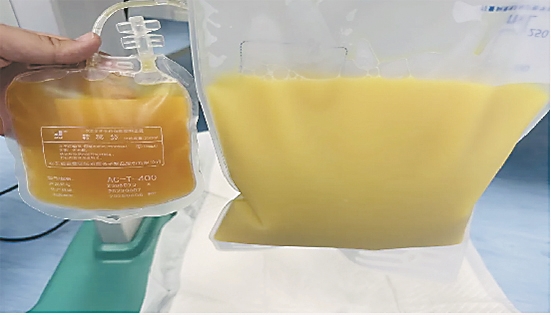 要控制住患者的病情进展,就必须快速降低血脂,接诊医生立刻联系输血科、消化内科、普外科会诊。考虑到血浆置换是治疗高脂血症诱发急性胰腺炎的有效手段,经团队仔细讨论、在患者家属同意后,决定为患者行治疗性血浆置换术。患者治疗后复查显示,甘油三酯(TG)降至8.8mmol/L,效果良好。经过数天的治疗和观察,杨女士的病情得到了有效控制。
