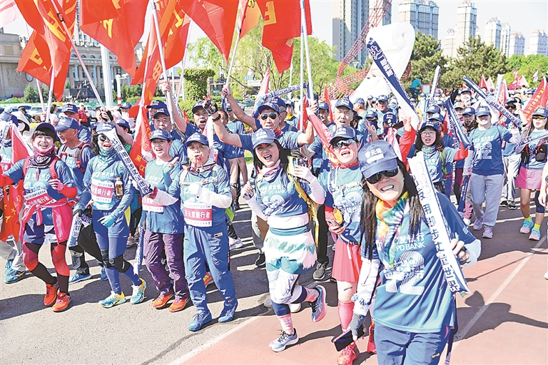 现场,不仅有哈市各企事业单位组成的团体,还有不少广场舞队、户外群等民间团体。“在家门口参加活动,太开心了。”群力社区开心舞蹈队的队员们,正在打卡拍照,年过六旬的赵军是舞蹈队领队,他告诉记者:“舞蹈队有40多名成员,平均年龄超过60岁,今天有22名成员参加徒步节,我们一定能坚持到终点!”