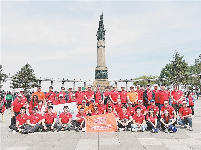 现场,哈尔滨大众肉联食品有限公司总经理韩功卿表示:“百年老字号哈肉联自建厂至今已经走过了110个年头,作为中国第一根红肠的诞生地,已经成为承载着城市记忆的活化石,可以说红肠的味道永远都是咱们哈尔滨人心中珍藏的味道。哈肉联生产出的哈尔滨红肠以猪的前槽肉和后鞧肉为主料,所有的香辛料都由原产地购进,公司自己打磨后使用,比如红肠里添加的大蒜,使用的都是出口型大蒜,质量上乘,俗称‘四六瓣’,红肠熏制的果木采用樱桃木、苹果树和梨树……百余年的时光很漫长,虽然几经岁月洗礼,但是红肠的制作技艺却从未中断,还是哈尔滨特有的家乡味道。此次万人徒步节是我们哈尔滨本地人翘首以盼、全民参与的节日,这样的节日,我们百年老字号企业不仅要参与,还要请家乡的百姓品尝我们的经典红肠,助力徒步节圆满成功!”